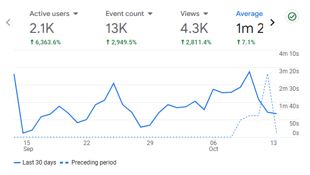 The site has crossed a little over 2,000 unique users and 4,000 pageviews. Search Console shows a 4.5% CTR, 159 clicks, and 3,500 impressions. These stats may not blow anyone away, but they tell me everything is working!