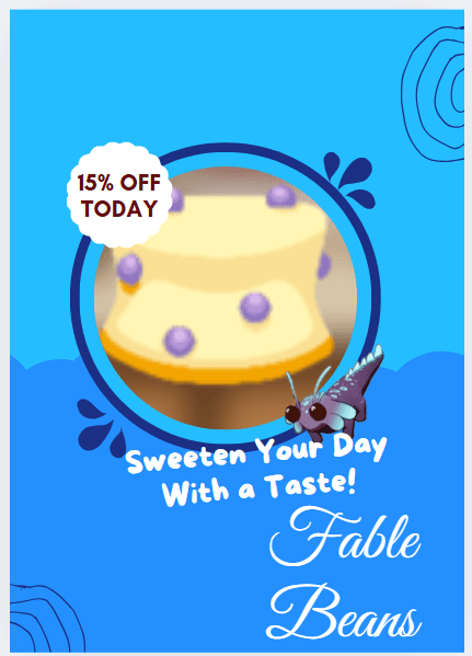 Be sure to include something from your game - your café's interior décor, your best critters, perhaps you yourself, whatever you consider to be your most marketable asset! - as well as some good marketing copy pitching your strengths to your intended customers, plus plenty of graphical design flair.