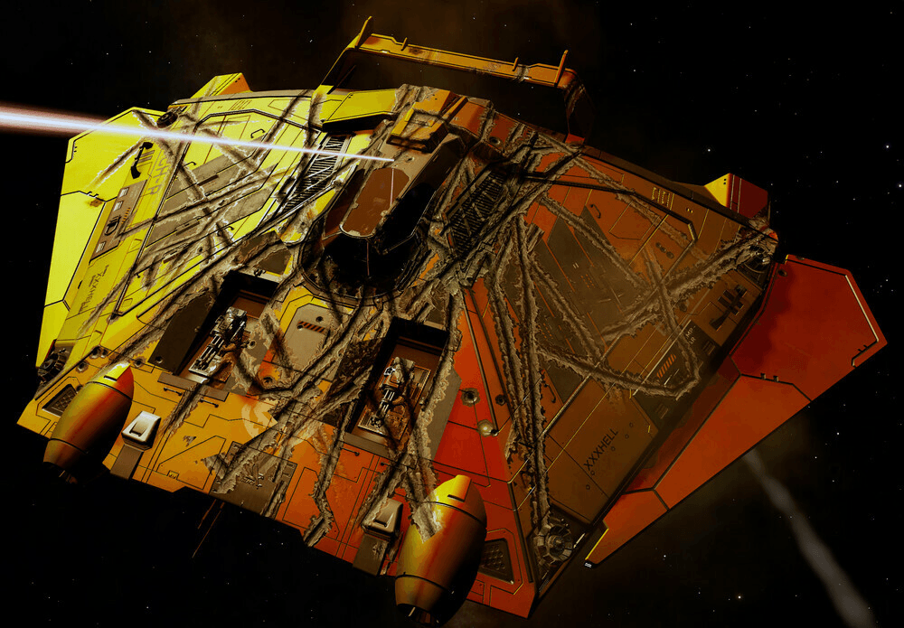Fleet ship: Bitch-Pea here always looks a little worse-for-the-wear, but despite being the smallest ship in the fleet, she can go toe-to-toe with most Thargoid craft, even under a full heat-targeted-lightning attack.
