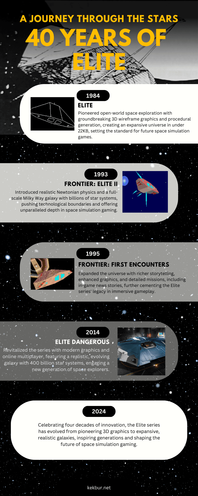 You've likely already seen our two high-value bounties celebrating 40 years of Elite. But those 40 years are only one of many incredible Elite statistics. A game like Elite is perfect for an infographic highlighting the amazing stats, facts, and figures.