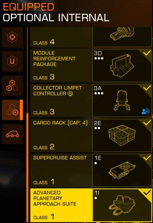 4E Cargo for limpets, so you can loot easier and Operations limpet controller 3B to use collectors to loot and Recon to hack screens for powerplay.