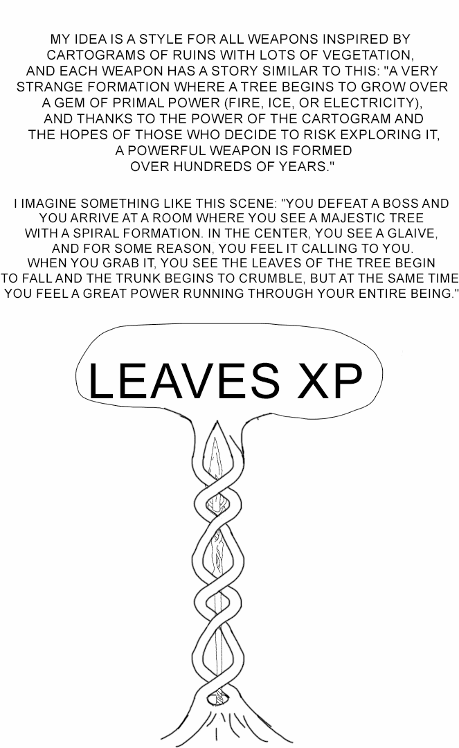 You must design an original new weapon that looks like it belongs in the colourful world of Empyreal. It must therefore fit one of Empyreal's three weapon archetypes: the glaive, the cannon, and the mace-and-shield, and it must look extraordinary - generic glaives won't cut it! Other than that, you can let your imagination run wild.