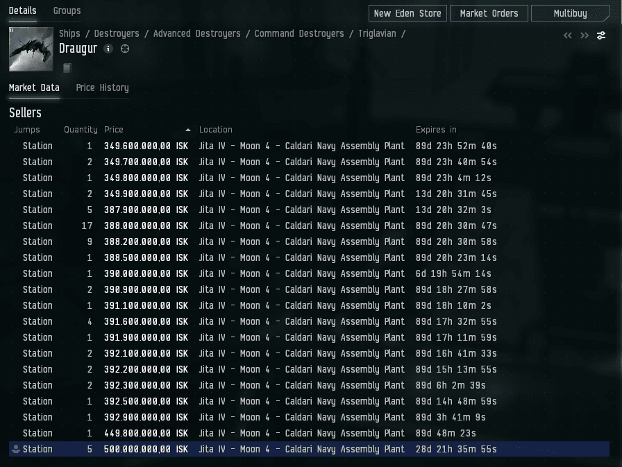 I should have made a screenshot yesterday but all Draugurs got bought in Jita.