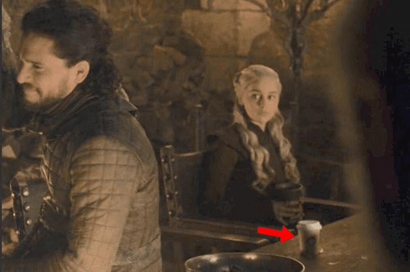 In the eighth season of Game of Thrones, during the episode "The Last of the Starks," a modern coffee cup from a well-known chain appears in one of the banquet scenes. It’s sitting right in front of Daenerys Targaryen, and this caused quite a stir among fans! Just imagine—after years of careful production, millions of dollars invested, and meticulous attention to medieval details, a modern coffee cup was left in plain sight!
