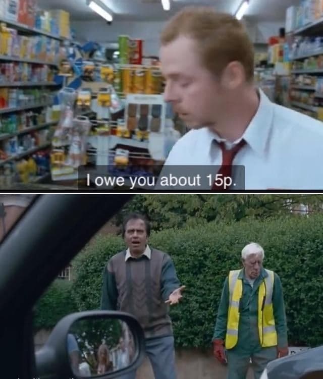 The overlooked detail I would like to point out is in the film Shaun of the Dead. The store owner is part of the horse surrounding Shaun and Ed as they get in Pete's car. As they swarm around the two you can see the store owner reaching his hand out for the money that Shaun owes him.