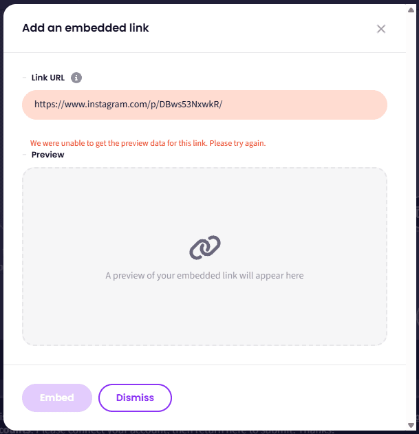 I've been trying for two hours to submit a bounty that requires a connection to some social network and it won't go, I've used all the possible links in the post. Is anyone else having this problem?
