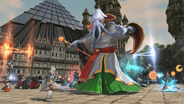 The final challenge players can take on in the first zone is a 48-man raid called The Forked Tower: Blood. It’s more like the Baldesion Arsenal of Eureka, as you have to be inside The Occult Crescent instanced zone and need a special weather condition for the tower to become available. For comparison Delubrum Reginae in Bozja was accessible to queue in via the Duty Finder from outside the instanced zone.