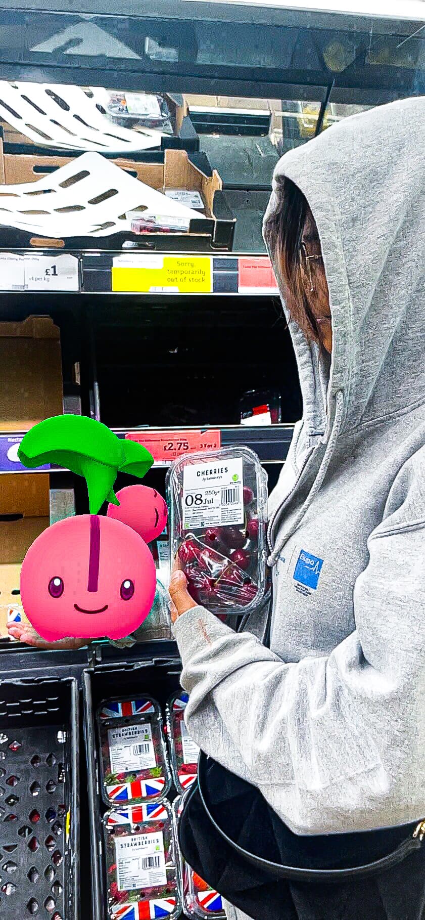 My image features the lovely Cherubi, which you can see in looking at and holding whilst doing a lil shop in Sainsbury’s picking up Cherrys!