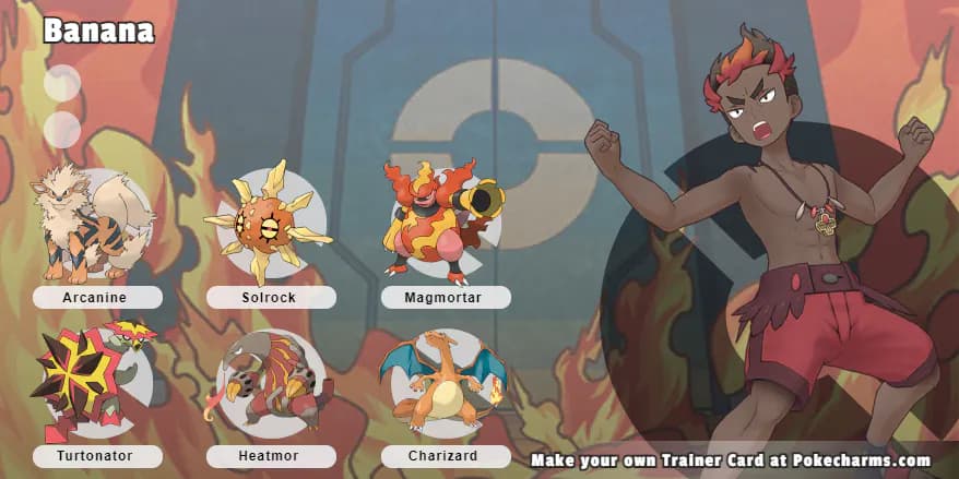Challengers will then finally face Banana as the gym leader, who has a fully evolved tough team of six: