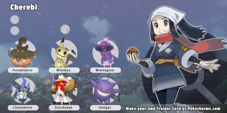 There are loads of iconic ghost-type Pokémon, and Cherebi has picked a few of them for her gym. Much like Paul lifted Vermillion City from Kanto, Cherebi has placed her gym in the Grandtree Arena of the Obsidian Fieldlands area from Hisui, in Pokémon: Legends Arceus, as she explains that's her favourite Pokémon game.
