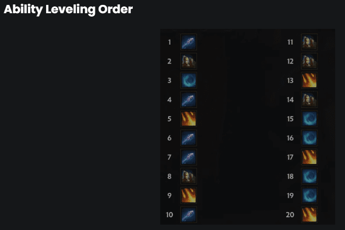 In first 3 levels, start with Ability 1 > Ability 2 > Ability 3. After that you can max out the ability 1. Don't forget to increase your ultimate whenever possible. After that you can max ability 2 and ability 3, in this order.