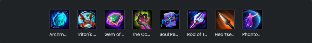 Item 3: Triton's Conch - I high HP stat stick item which also provides an aura for lategame fights. Scales better with level.