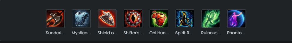 Late Game: Add items like Shogun’s Kusari to increase durability while boosting your team’s attack speed and strength.