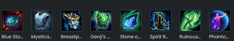Now, build some Protection focused items, like Bagua Mirror (Magical Protection), Spectral Armor (Physical Protection + proximity debuff) and/or Stone of Binding (both Protection + debuffs when CC hits). This depends on the enemy team’s composition.