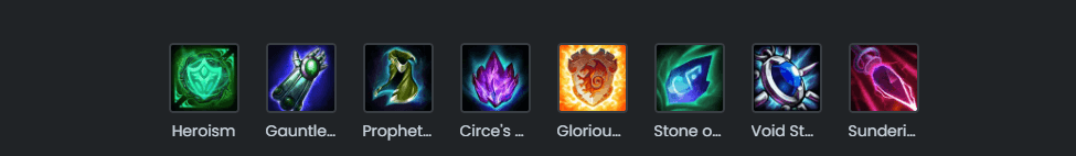 • Relics: Sundering Arc as solo laner or jungler, and Phantom Shell as support.