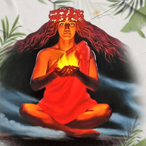 Pele derives from Hawaiian mythology, being the daughter of Haumea, the goddess of fertility, and Kane Milohai, the creator god, carrying the burning flame of creation. This flame not only represents fire, but also transformations, whether emotional or otherwise. According to mythology, Pele took refuge on the Big Island of Hawaii, in the Kīlauea volcano, where he resides to this day and manifests himself through volcanic explosions.
