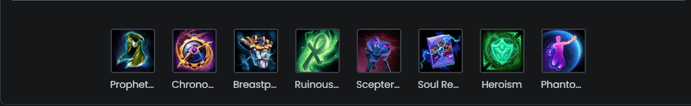 Our third item, we will make a mixed protection variation to have magical and physical protection and help reduce healing for enemies who may have healing abilities or equipment that provides healing or lifesteal. This item will be "Ruinous Ankh", a very good item to complement our defense.