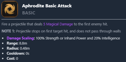 Aphrodite, the Greek Goddess of Beauty is a ranged magical character that excels at healing and buffing allies to give her team the edge in a fight. She is primarily played as either a mid of support in conquest and this guide will teach you her kit and how to best utilize her.