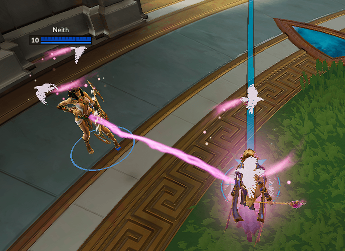 Third ability (Love Birds): Aphrodite fires projectiles forward in the form of birds that deal constant magic damage per tick to enemy gods hit, When casting this ability, Aphrodite and her Soul Mate will begin to heal themselves repeatedly little by little.