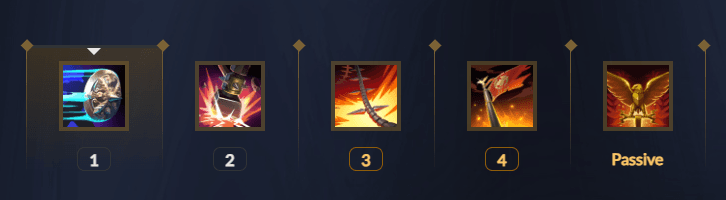 Passive (Master Of War): when Bellona hits or is hit by basic attacks, she gains movement speed. Each skill modifies the style of the basic attack, with unique effects. If you use Sword and Shield, you gain protection stacks; Scourge gains attack speed stacks; Hammer gains strength stacks. The passive helps you a lot to sustain yourself in the lane, you can accumulate protection and speed in exchanges.
