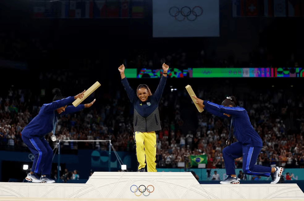 My sporting hero is Rebeca Andrade, the Brazilian artistic gymnast who won four medals at the Paris Olympics this year, one gold, two silver and one bronze. I think Rebeca is a great example of overcoming and determination, and has proved how far these qualities can take us. As well as being a great inspiration to Brazilian and black women who face challenges on a daily basis. Rebeca Andrade has gone and is still going very far, competing side by side with Simone Biles, who is a spectacle.