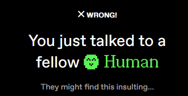 This is pretty interesting and has been doing the rounds on socials for the last day or so. You'll get matched up with either another human or an AI bot and you have to figure out within two minutes which you're talking to.