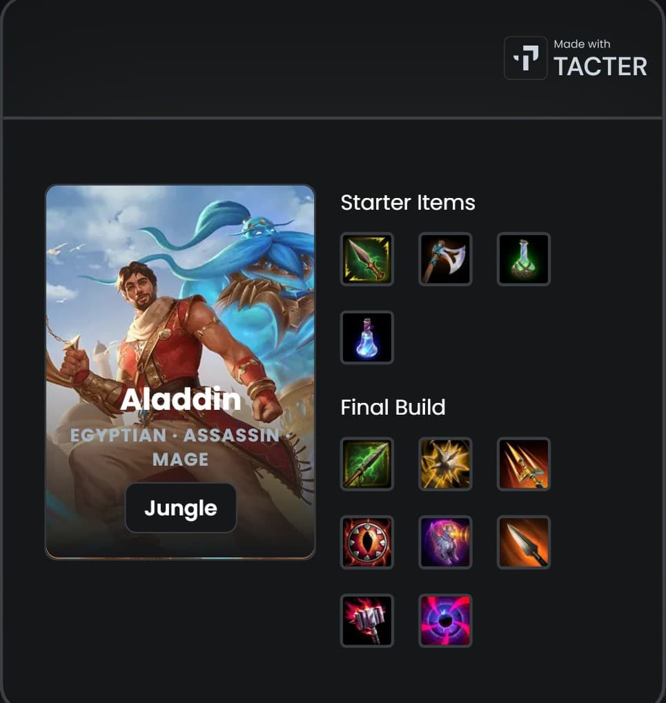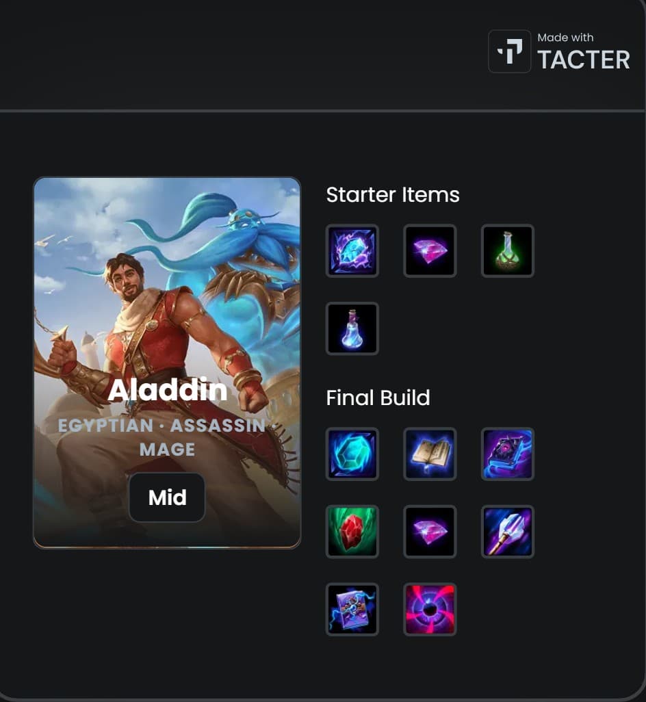 These are 2 builds for Aladdin one is pure magical damage and the other one is physical damage.