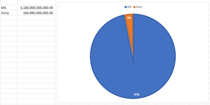 Microsoft bought a single gaming company for 73b, which is nearly the same as Sony's market cap with all their TVs, phones, and movies.