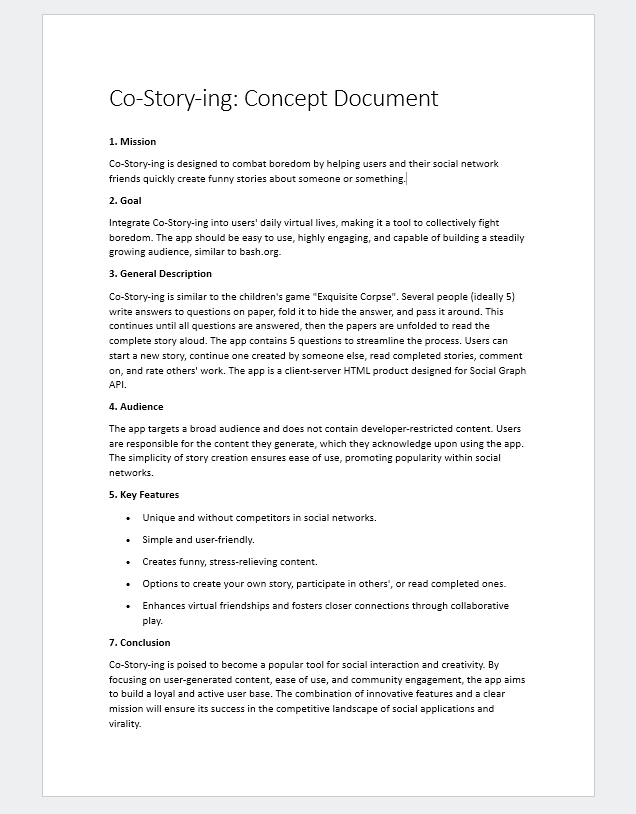 Integrate Co-Story-ing into users' daily virtual lives, making it a tool to collectively fight boredom. The app should be easy to use, highly engaging, and capable of building a steadily growing audience.